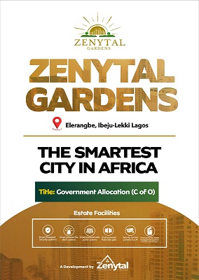 Limited plots available in the relaunched Zenytal Gardens Estate in Ibeju-Lekki. 100% Secure Investment with verified C of O and no hidden charges.